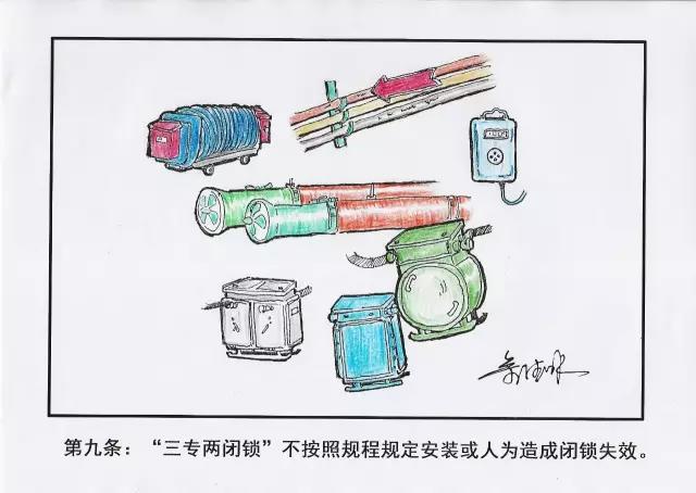 9、“三专两闭锁”不按照规程规定安装或认为造成闭锁失效。