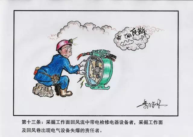 13、采掘工作面回风流中带电检修电气设备者,采掘工作面及回风巷出现电气设备失爆的责任者。