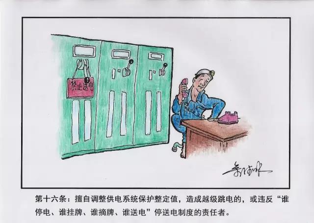 16、擅自调整供电系统保护整定值,造成越级跳电的,或违反“谁停电、谁挂牌、谁摘牌、谁送电”停送电制度的责任者。