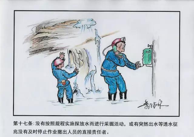 17、没有按照规程实施探放水而进行采掘活动,或突然出水等透水征兆没有及时停止作业撤出人员的直接责任者。