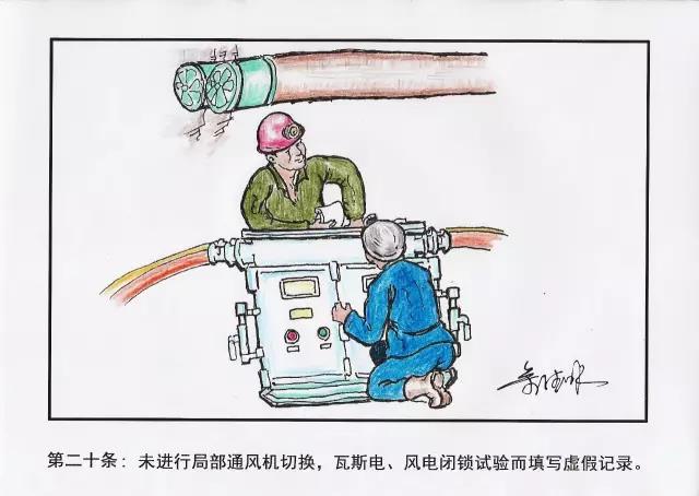 20、未进行局部通风机切换,瓦斯电、风电闭锁试验而填写虚假记录。