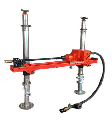 河南永城一煤矿,地质防止水工程施工地点在掘进工作面迎头位置,现场施工条件较差,在探放水方案中,部分工程仅需要施工1-2个钻孔,多的也就需要3-5个钻孔,最大孔深在100米以内。所以河南永城矿上想找台小型的探水设备。根据矿上的条件启睿技术人员给推荐的双立柱气动架柱式钻机ZQJC-800/11.0S,这款钻机钻孔效率高,也符合矿上工期紧,需要钻孔速度较快钻机的要求。