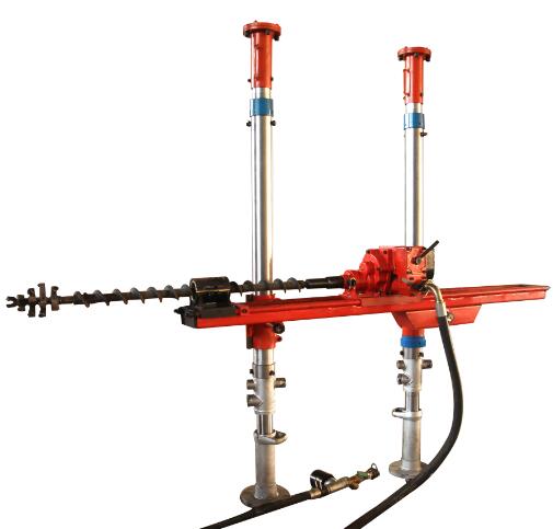 气动探水钻机机型有手持式和架柱式两种,手持式钻机可钻深度叫浅,气动架柱式钻机为常用气动探排瓦斯钻机。这款钻机探排瓦斯较大的优势是钻机为全风动钻机,整个运行以压缩空气为动力,不用接电,这样可以有效避免瓦斯泄露情况下电气设备运行引发的爆炸,安全性能显著提高。尤其是瓦斯含量比较高的煤矿,推荐使用气动架柱式钻机,少一个隐患井下施工安全就多一层保障。