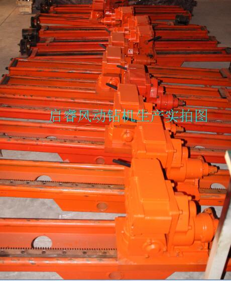 现在市场上常见的风动探水钻机是架柱式的,型号为ZQJC,按照扭矩和功率不同有ZQJC-380/7.3S,ZQJC-650/11.0S,ZQJC-800/11.0S,ZQJC-1000/11.0S等诸多型号,启?;瞪钠苤阶昊?,有十多个型号,扭矩从220N.m到1000N.m。