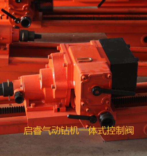 气动架柱式钻机采用分组式布局,整机由回转动力总成、导轨总成、立柱总成、注油器总成四大部分组成。整体结构简单,稳定性好,牢固可靠。各个部分组装拆卸方便,分体搬运轻巧省力。钻机运行操作通过换向阀总成控制完成,换向阀总成由阀体和两个阀芯、手柄组成。操作两手柄可实现钻杆的正反转和动力总成的前进和后退。钻机除调整角度外,推进、旋转通过操作手柄单独控制,正常操作只需一人即可完成;极大的提高劳动效率,节省劳动强度和时间。