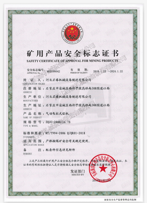 启睿探水钻机主要有气动架柱式、液压回转钻机、气动履带式钻机等,几十个机型均通过安标中心检验,获得安标证书的钻机,产品生产材料、生产工序都严格检验,符合并部分超出行业标准,以确保钻机在矿上的安全使用。启睿探水钻机现在山西、陕西、新疆、内蒙古、贵州等诸多矿区井下使用,故障率低,钻进高效,矿上朋友可以考虑选用。