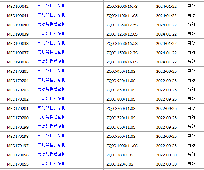 作为气动架柱式钻机生产厂家,启睿气动架柱式钻机多18个型号,各型号均已通过安标中心质量审核并获得安标证书,矿上朋友可放心选用。