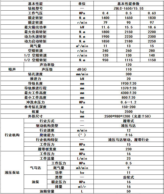 ZQJC-1650/15.5S气动履带式钻机是我公司生产的新一代履带行走式钻机。是一种以压缩空气为动力,履带行走式轻型深孔钻机。适用于煤矿井下采用高效螺旋钻杆和硬质合金钻头在煤层中的探水、探瓦斯及瓦斯抽放孔的施工。该设备具有结构紧凑、操作灵活、机动性能强、安全性能好。整机采用独立模块化设计,方便故障部位维修更换,较大程度上缩短了维修保养的时间。