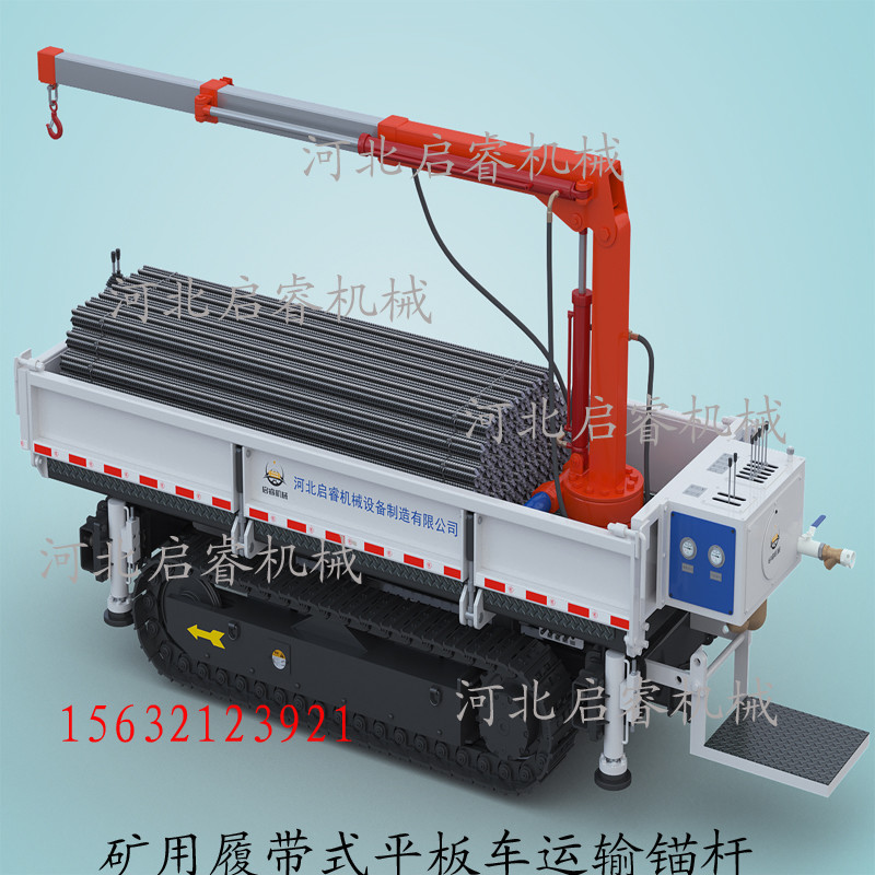气动履带式平板车,主要适用于煤矿上物料运输、吊装、牵引等工作,具有体积小、牵引力大、噪音低等优点。运输车标准宽度900-1100mm,应用于狭小巷道工矿运输